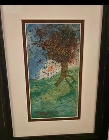 I was six years old the last time I painted trees. That painting still hangs in my mother’s home. It has shocking similarities to what I did today.