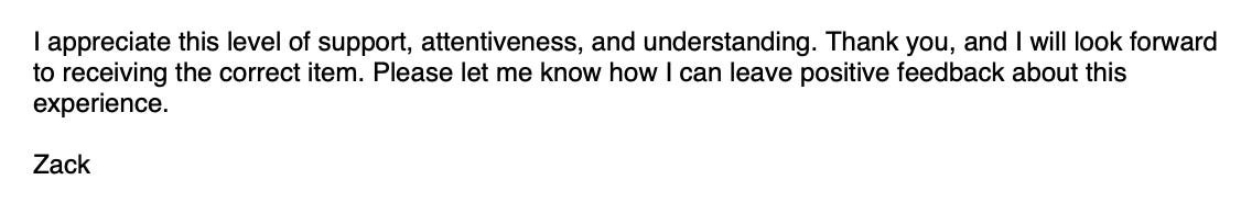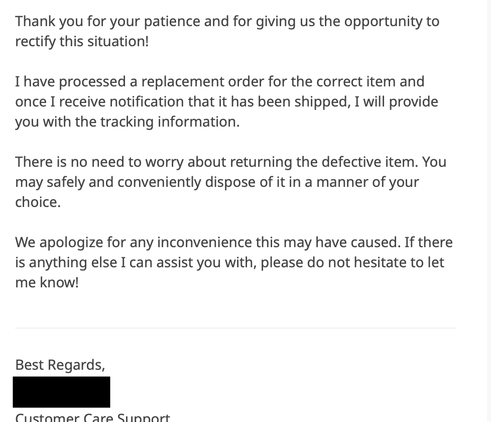 Oh, and the company will get a glowing review from me for handling this so well.